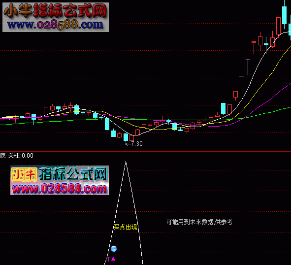 DRAWTEXT(CROSS(关注,1.2),关注*0.86,'↑▲'),COLORFF00FF;