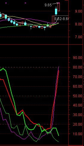 量价抄底指标公式B:EMA(100*(C-LLV(LOW,34))/(HHV(H,34)-LLV(LOW,34)),3), COLORRED,LINETHICK2;