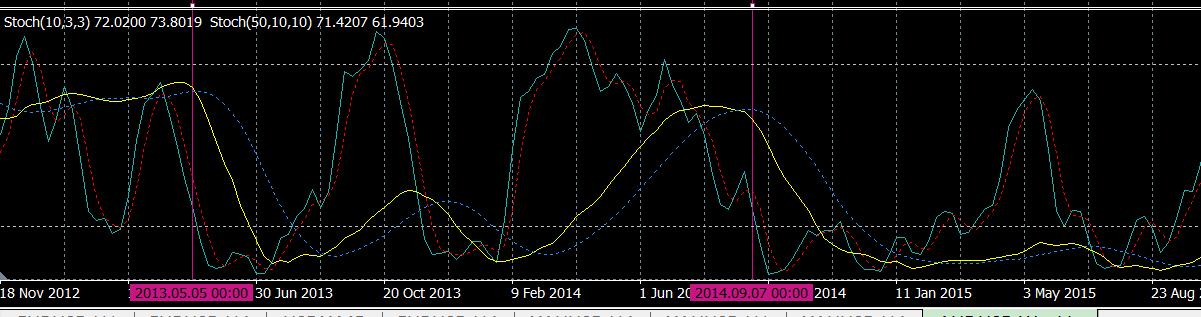 %K慢速周期:这个数值控制着%K内在的平滑度。参数为1被看作是快速随机震荡指标,参数为3则被视为慢速随机指标。默认是3。