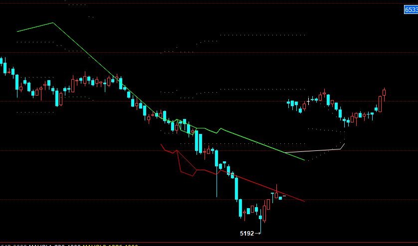 下轨:IF(NP>FP,IF(UTL<=RH,UTL,DRAWNULL),IF(UTL1>=RL,ATL1,DRAWNULL)),COLORRED,DOTLINE;