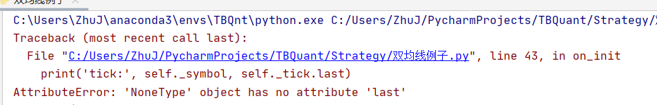tbpy的get_current_tick(),用双均线示例同一段代码,有时候运行可以获取,有时候不能。下图1是可以的,图2则失败